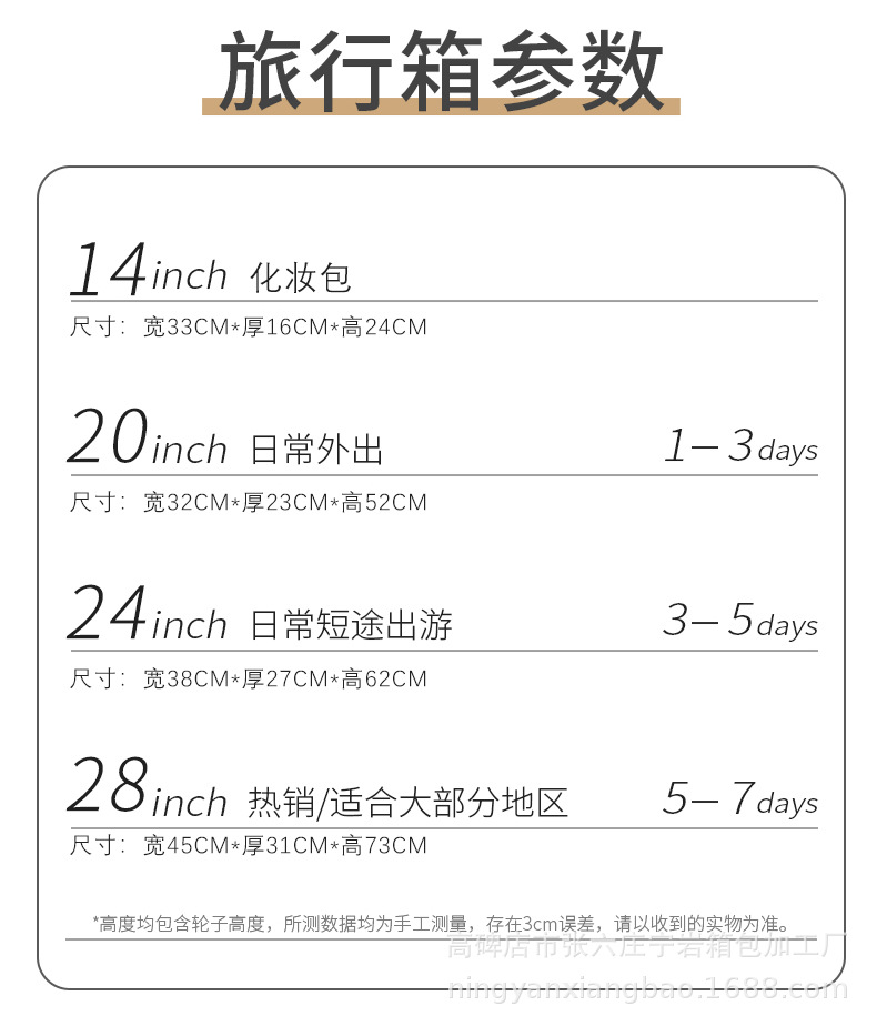The factory is located in Gaobeidian City, the main wholesale trolley box, luggage. Have their own production factory, all products of the shop support a hair, processing and customization. We will produce new products on a regular basis, and we can also customize products. We are looking for agents. Tel: 15097436488 (wechat synchronization)!!